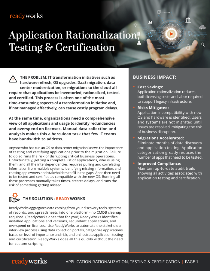 ReadyWorks Application Rationalization Testing Certification
