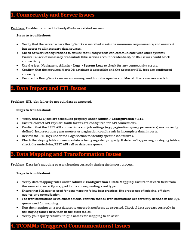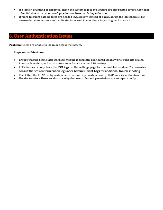 ReadyWorks Troubleshooting
